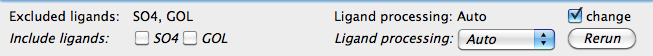 | Auto | PISA decides automatically, which ligands should be fixed to macromolecules, and which ones should be considered as free entities. This is the default mode, and it is good in most cases. |