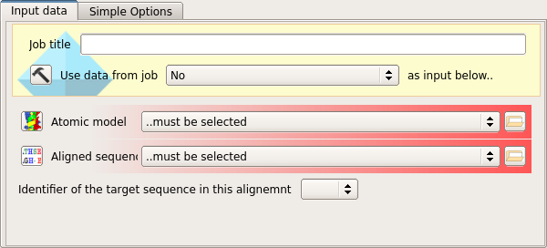 Since the sequence alignment will contain two aligned sequences, the name of the target structure sequence in the alignment file must also be selected from the drop-down menu.