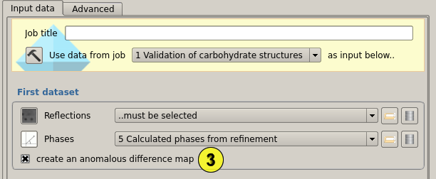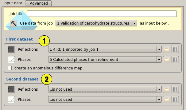 This task can calculate weighted difference map coefficients (two datasets, fill (1) and (2) in) and anomalous difference map coefficients (one dataset, fill (1) in and tick (3), intensity or amplitude pairs are required).