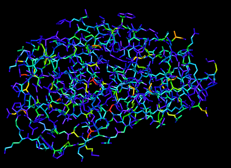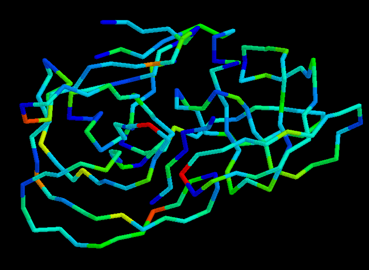 displayed PDB file which has a B-value of 80.00 (which is
