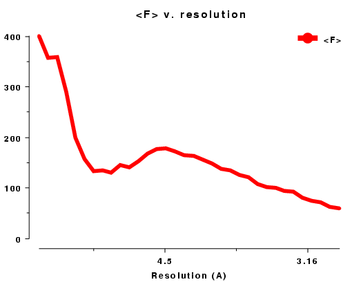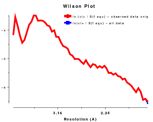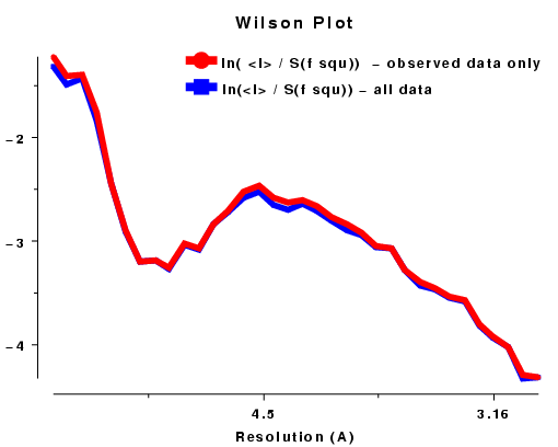 resolution data does not usually generate such a straight line. In fact the atoms are not distributed randomly within the crystal and the solvent regions