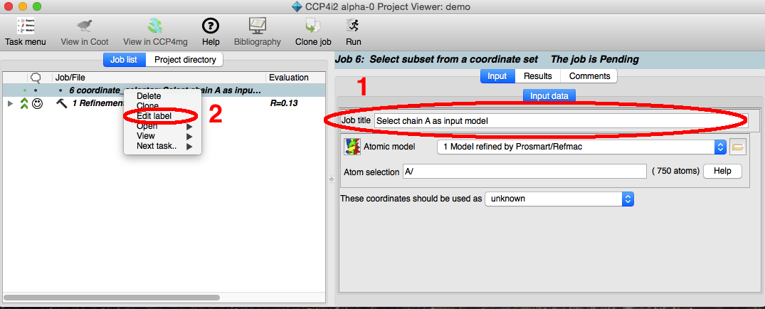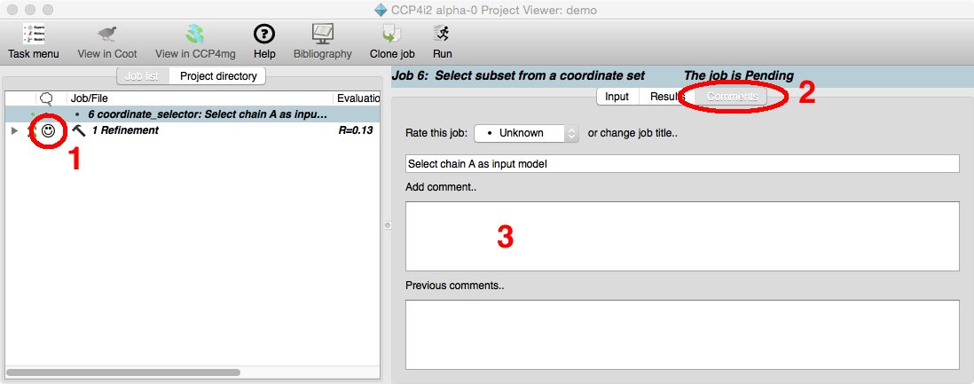 1The Project directory tab opens a view of all the directories and files in the project directory. You should not need to use this often but if you need to see what is happening then note that the 'top' directory for each job often contains sub-directories - one for each major program run.